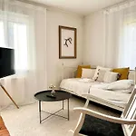 Das Apartment ist auch mit einem Sofa ausgestattet. Von Zimmern aus haben Sie einen Ausblick auf den Garten. Das Badezimmer verfügt über eine getrennte Toilette und eine Dusche sowie über Badelaken und Handtücher.
